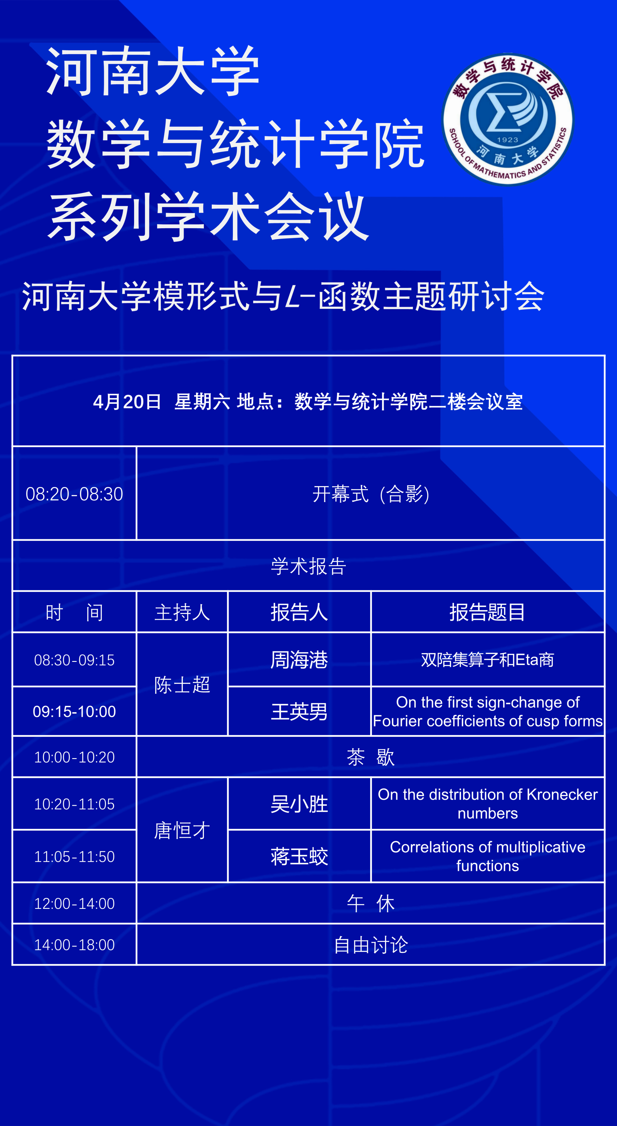 2024年河南大学模形式与L-函数主题研讨会(2024.19-21)