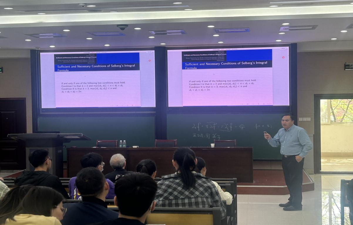 燕敦验教授在报告中首先介绍了高阶k重Beta积分公式成立的充分必要条件,这完整地回答了国际著名调和分析专家Loukas Grafakos在[Pacific J. Math. 191 (1999), 85-94]中提出的公开问题。随后,燕敦验教授指出了上述积分公式中出现的常数恰好是广义Hardy-Littlewood-Sobolev不等式成立的最佳常数。这些结果在调和分析中有十分重要的理论意义,并被广泛应用于偏微分方程和几何分析等领域。