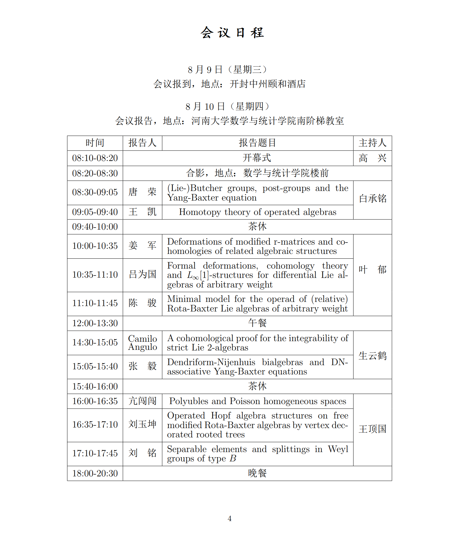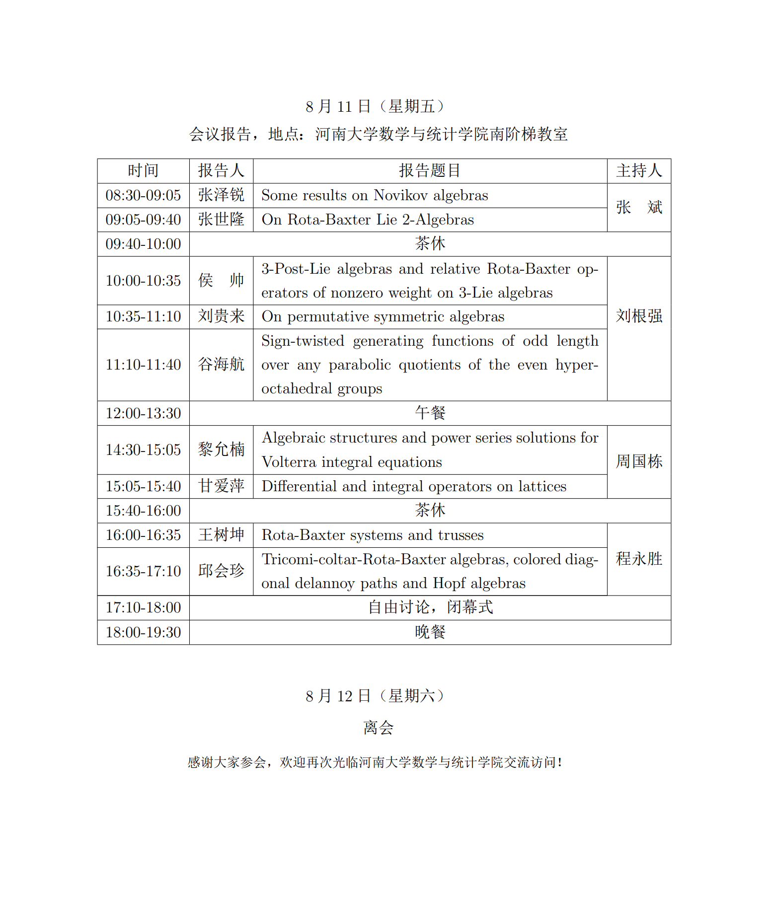 2023年河南大学罗巴代数及相关课题研讨会日程安排