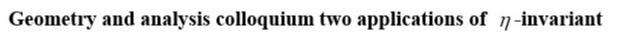 Geometry and Analysis ColloquiumTwo applications of n-invariant