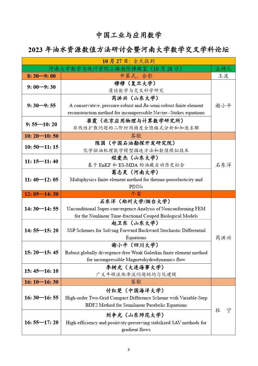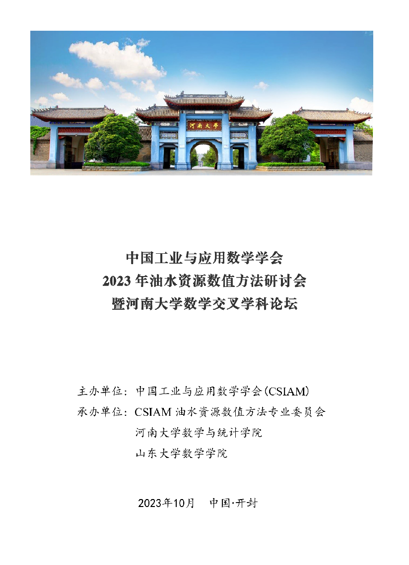中国工业与应用数学学会2023年油水资源数值方法研讨会暨河南大学数学交叉学科论坛