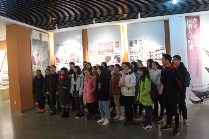 参观完展览,全体在校歌展牌前深情合唱《河南大学校歌》,“嵩岳苍苍,河水泱泱......”歌声悠扬回荡在馆内,回荡在每一个人的心间。
