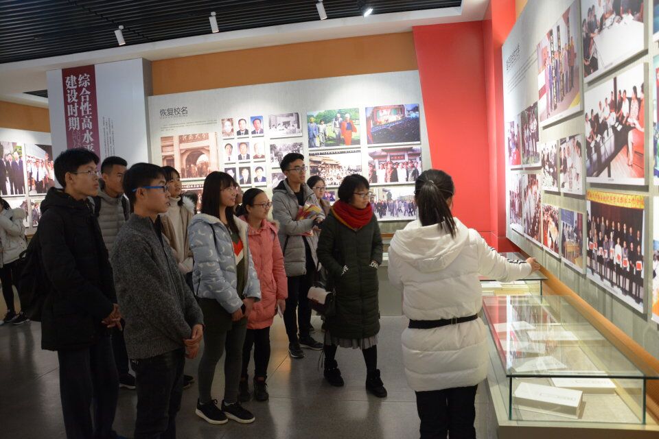 大家在讲解员的引导下安静有序进入校史馆,听讲解员娓娓道来学校的发展历程,深深地被墙上镶嵌的一块块精美的LED展板和一幅幅带有浓厚历史色彩的老照片所吸引,无一不为展馆中珍贵的史料、文物而折服,为图片中展现的鲜活、尘封的岁月而感慨,为学校曲折但光辉的历史而骄傲。