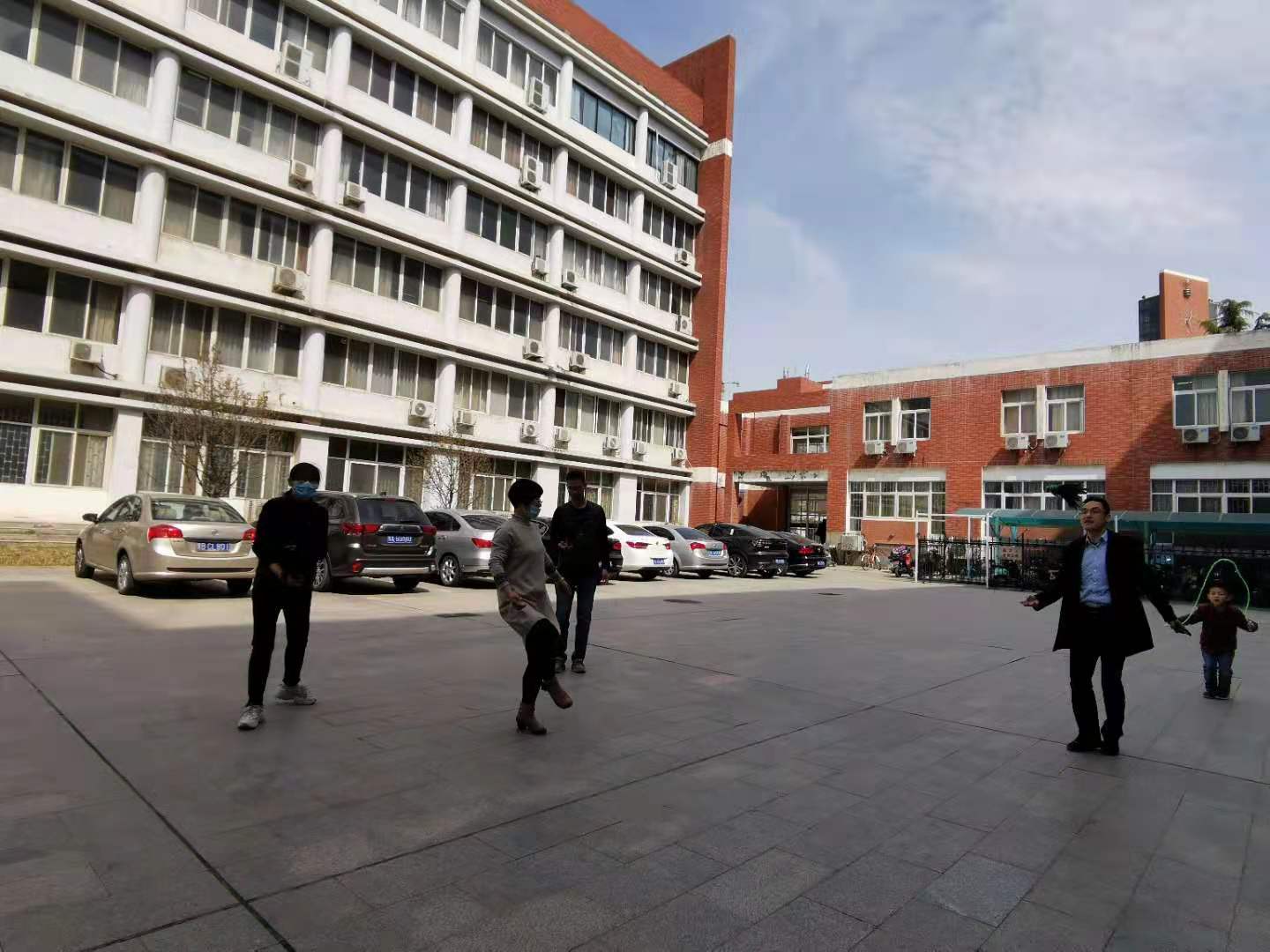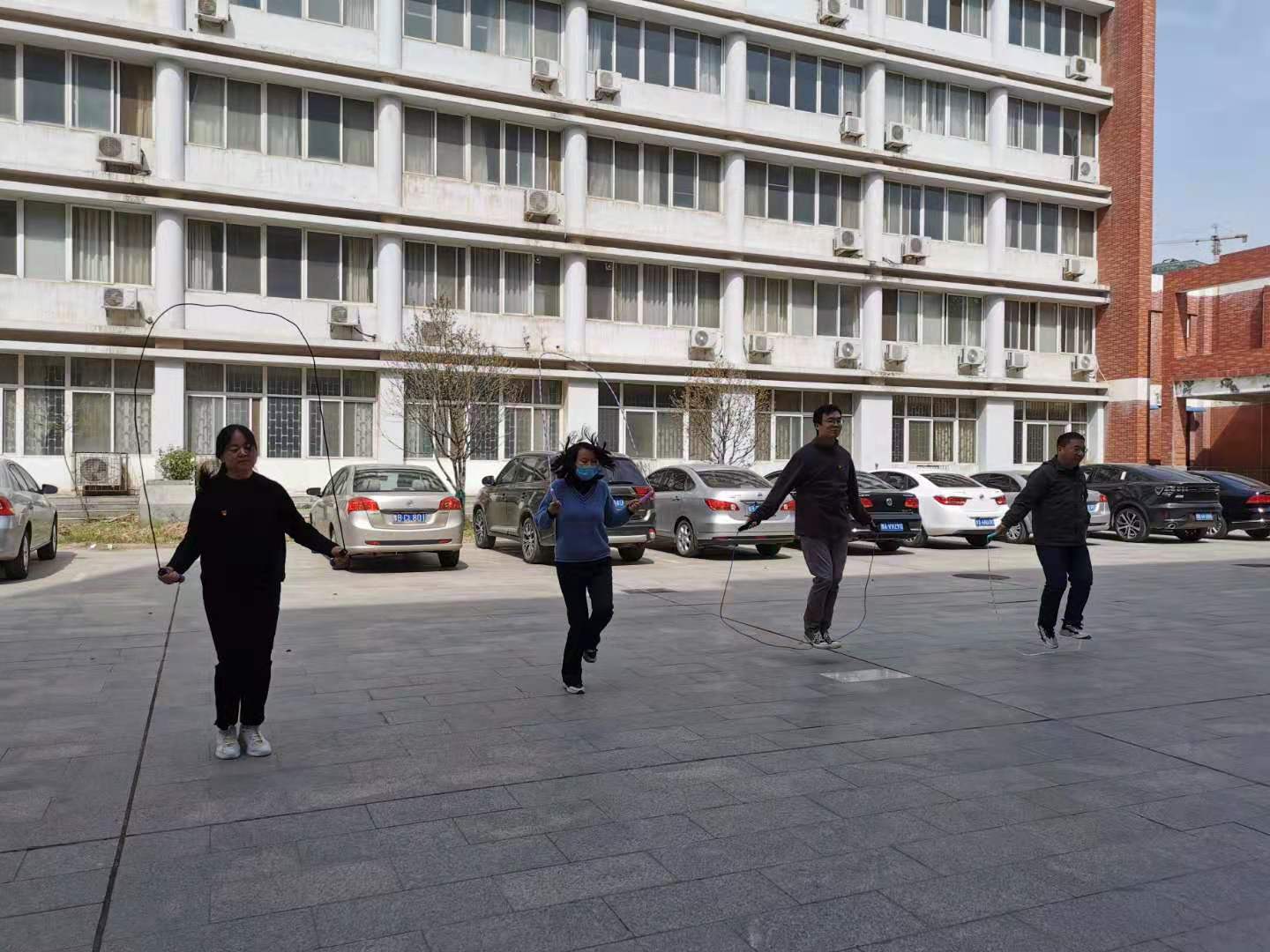 天井院。稍作休息之后,三个支部分组开展了踢毽子和跳绳比赛。本着“友谊第一,比赛第二”的宗旨,现场热烈且有序。跳绳比赛中,只见绳子飞速地旋转,可谓争先恐后;同时五颜六色的毽子此起彼伏,在运动员的脚上开起了一朵朵鲜艳的花;经过一番激烈的比拼,最终老师们都取得了不错的成绩。