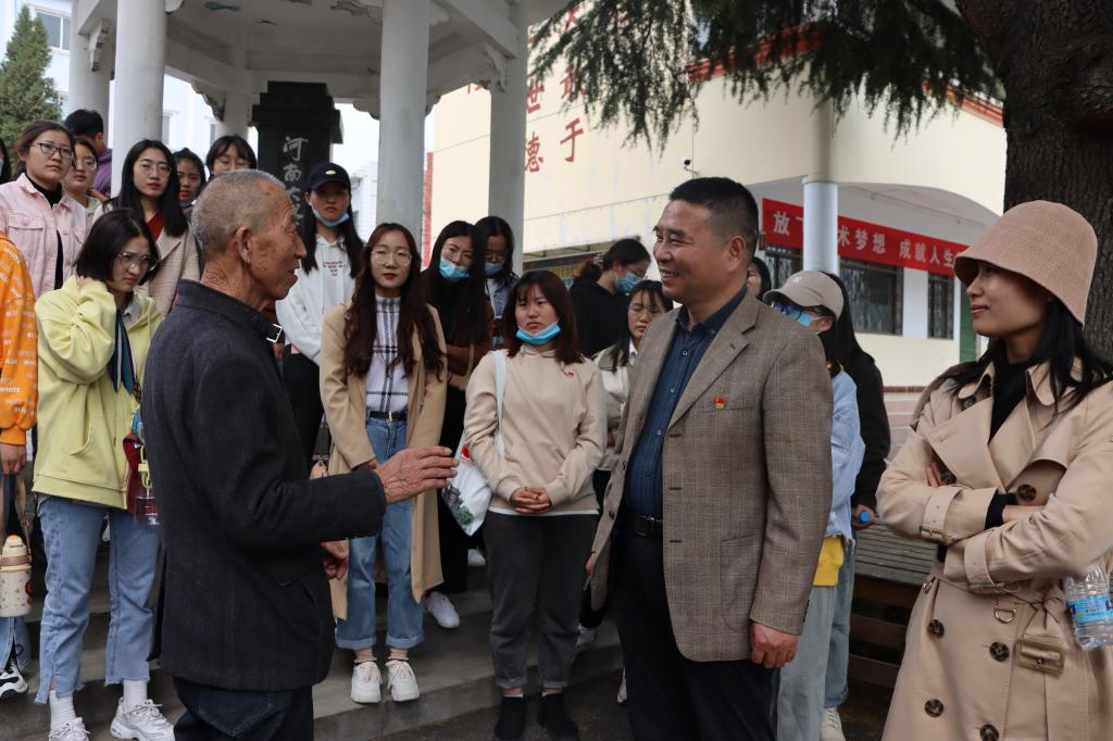 在附中院内参观期间,大家偶遇了任景岳先生,70多岁高龄的任先生本身就是河南大学与潭头结下深情厚谊的历史见证人。他身上有很多关于河大与潭头的动人故事,其中最著名的是关于“河大红”牡丹的一段佳话。他讲到:当年潭头办学期间,我校农spbo即时比分手机