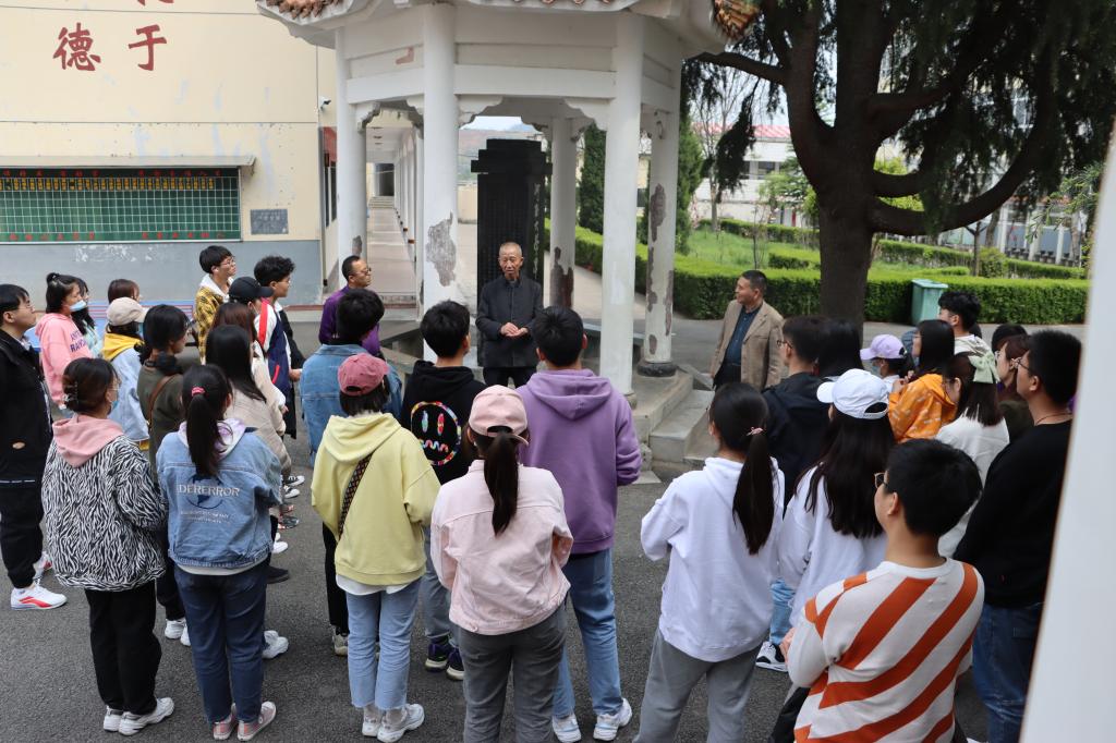 接着,师生们来到河南大学潭头附中(原七七中学旧址)参观。当走到位于附中校内的“河大柏”旁边时,大家不禁驻足停立。“苍柏无言,下自成蹊”,这两棵见证了河南大学办学辉煌历程的苍苍翠柏,用它们端庄、秀颀的身姿挺起了教育人的脊梁。
