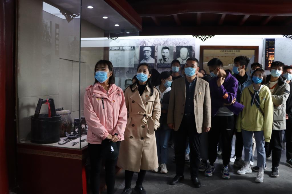 11日上午,师生们来到位于洛阳市老城区的八路军驻洛办事处(简称“洛八办”)。该建筑是清代的豫西庄家大院,国家级文物保护单位,红色教育基地。1938年11月,党中央为抗击日本帝国主义的侵略,抵制国民党反动派的投降卖国主义路线,经朱总司令和林伯渠亲自写信与国民党第一战区司令长官谈判建立。走进陈列室,一件件革命文物、一张张图表、一幅幅珍贵照片,无言地向我们述说着前辈们在极其艰苦恶的环境下同敌人斗争、甚至付出生命代价的场景,也真实再现了中国共产党统一战线具体实践和国共第二次合作时的场景,表现了中华儿女一致对外,保家卫国的爱国精神。