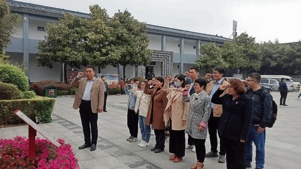 随后,大家来到竹沟革命纪念馆。这里记载了曾经在竹沟这片热土上战斗过的无数革命前辈、革命先烈和仁人志士的英雄事迹,展示了被誉为“小延安”的竹沟地区的革命精神。透过珍贵的历史物件和图片资料,大家重温了那段波澜壮阔的革命历程,感受到了革命先辈不畏牺牲、勇往直前的战斗精神,心灵备受洗礼。随后,在史富强书记的带领下,大家面对英雄雕像和鲜红的党旗,重温入党誓词。