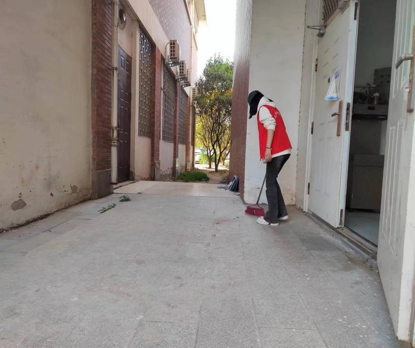 内外的清洁工作,有的负责规范路旁车辆摆放。大家干得热火朝天,对每个卫生死角都进行了全面细致的清理,让清洁工作有条不紊地进行。
