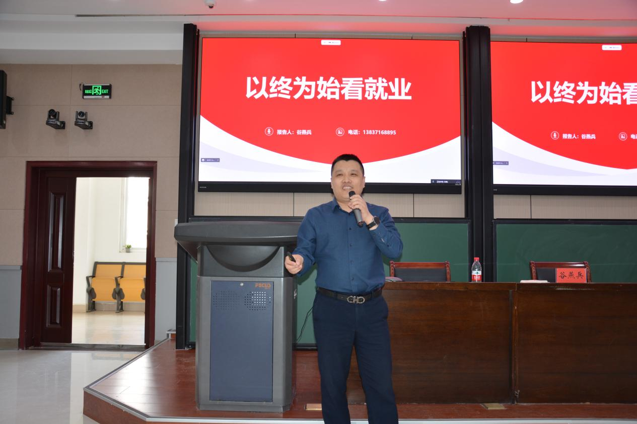 二楼南阶教室作题为《以终为始看就业》的就业指导报告。spbo即时比分手机