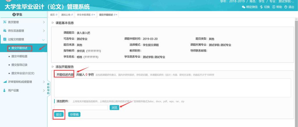 2.过程文档管理(开题综述、中期检查、指导记录、毕业论文提交)