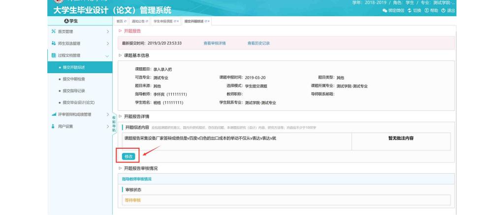 ※审核通过后修改需要指导教师“允许修改”即可。