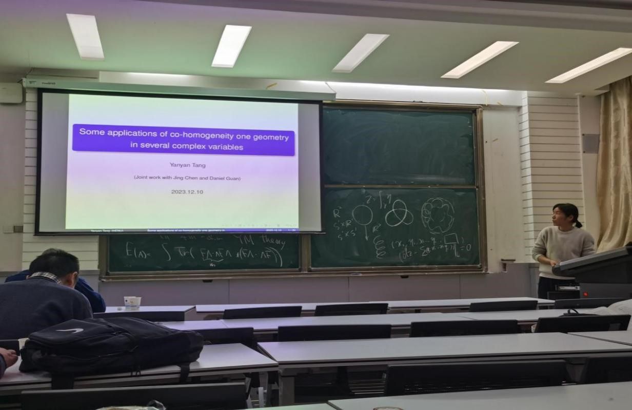 河南大学唐言言以twisted Fock-Bargmann-Hartogs domains为例,介绍了余齐性一几何在多复变中的一个应用,与合作者给出该域上Kahler-Einstein metrics和extremal metrics的表达式。