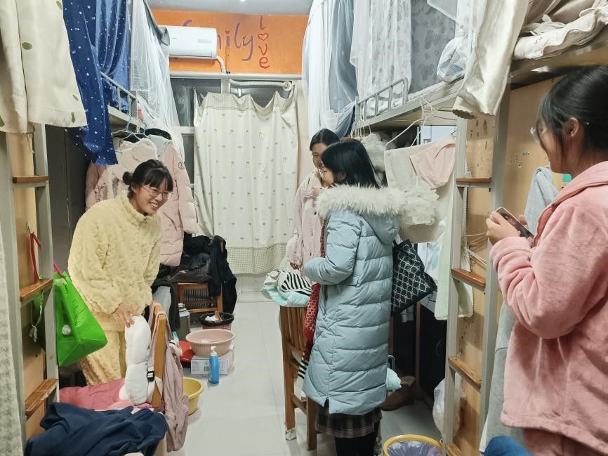 走访过程中,辅导员们对学生宿舍的寝室卫生和安全隐患进行了排查,并提醒同学们注意用电、用火安全,预防火灾等意外事故的发生,在寝室严禁使用违规电器,希望每位寝室长能够负起责任。同时,辅导员们督促同学们要维持公寓的卫生整洁,爱护寝室环境,妥善保管贵重物品,共同营造良好的寝室环境。他们与同学们沟通交流,深入了解学生们的生活情况,并提醒同学们在宿舍要注意保持室内空气流通,多穿衣服、多吃热食、多喝热水,外出注意防寒保暖,做好防护措施。