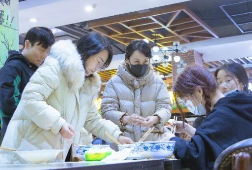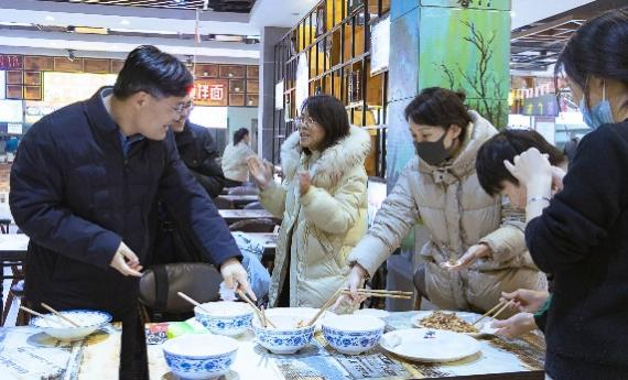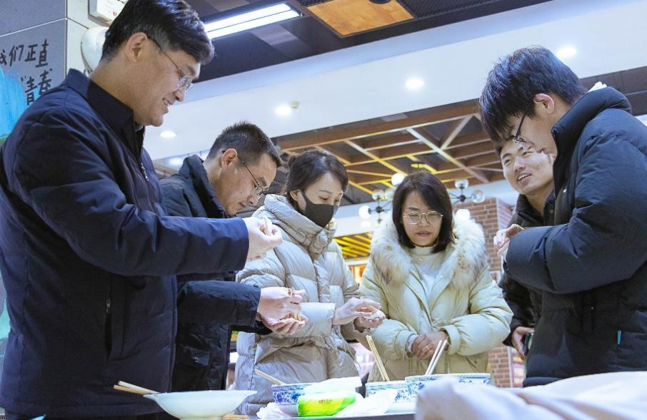 党委书记曹志伟,党委副书记刘佳明,副院长杨一平及本科生、研究生辅导员和各年级学生代表340余人一起包饺子、过冬至。