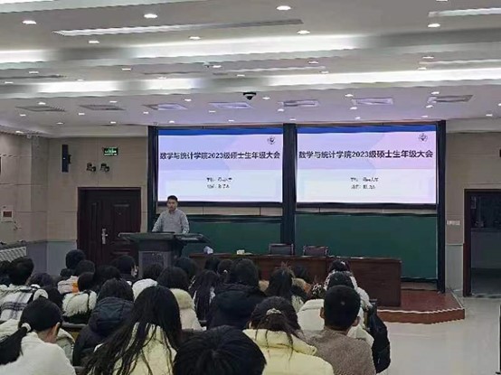 2023级研究生辅导员陈顺杰在南阶教室召开2023级研究生年级大会,此次会议聚焦防范学风建设、电信诈骗以及寒假安全教育等专题,给2023级研究生同学进行全面地阐释和有效引导。2023级全体硕士研究生参加大会。