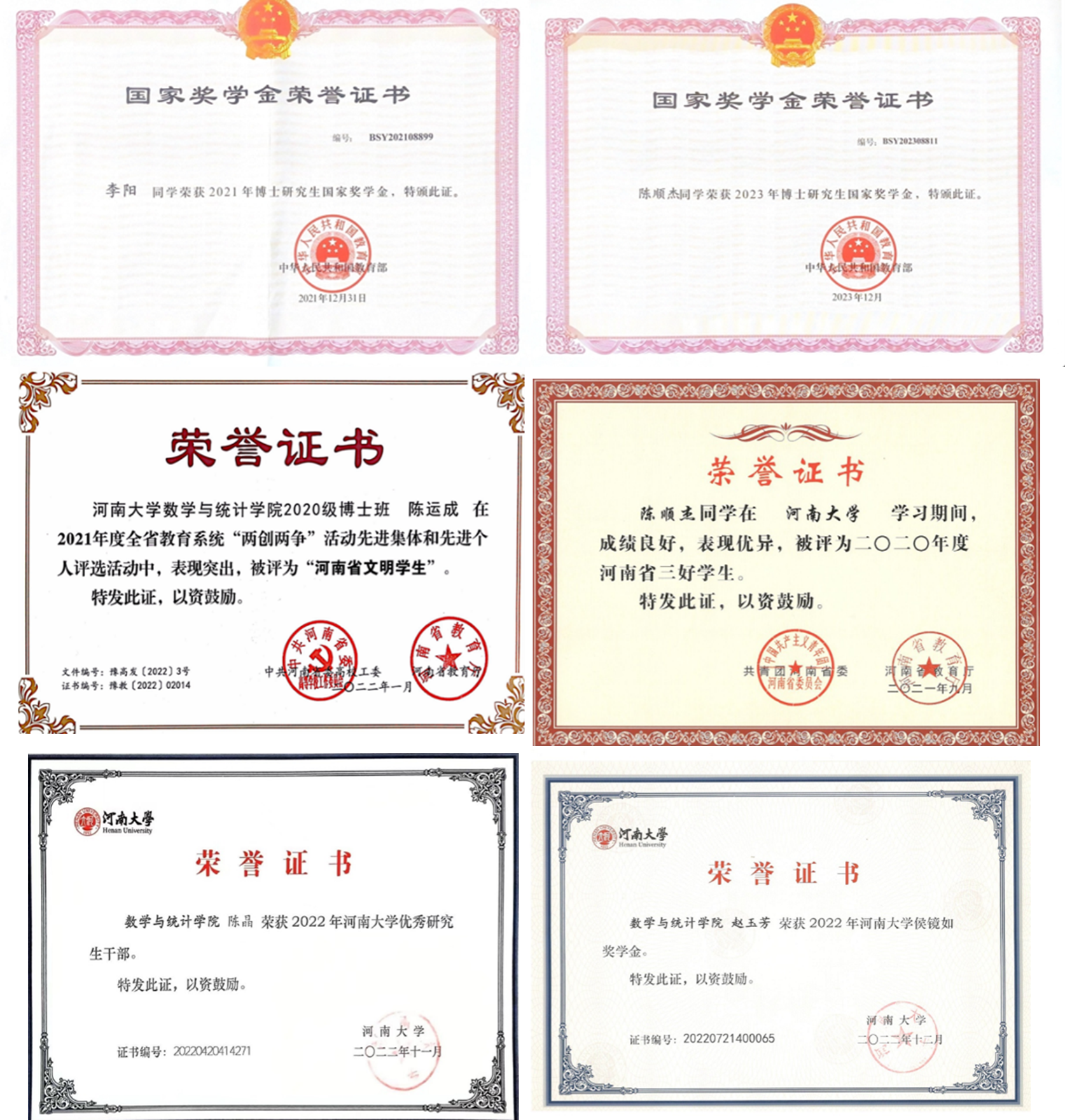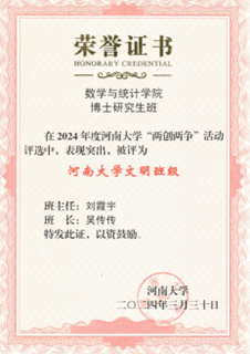 博士研究生班在2024年度河南大学“两创两争”活动评选中被评为“河南大学文明班级”。