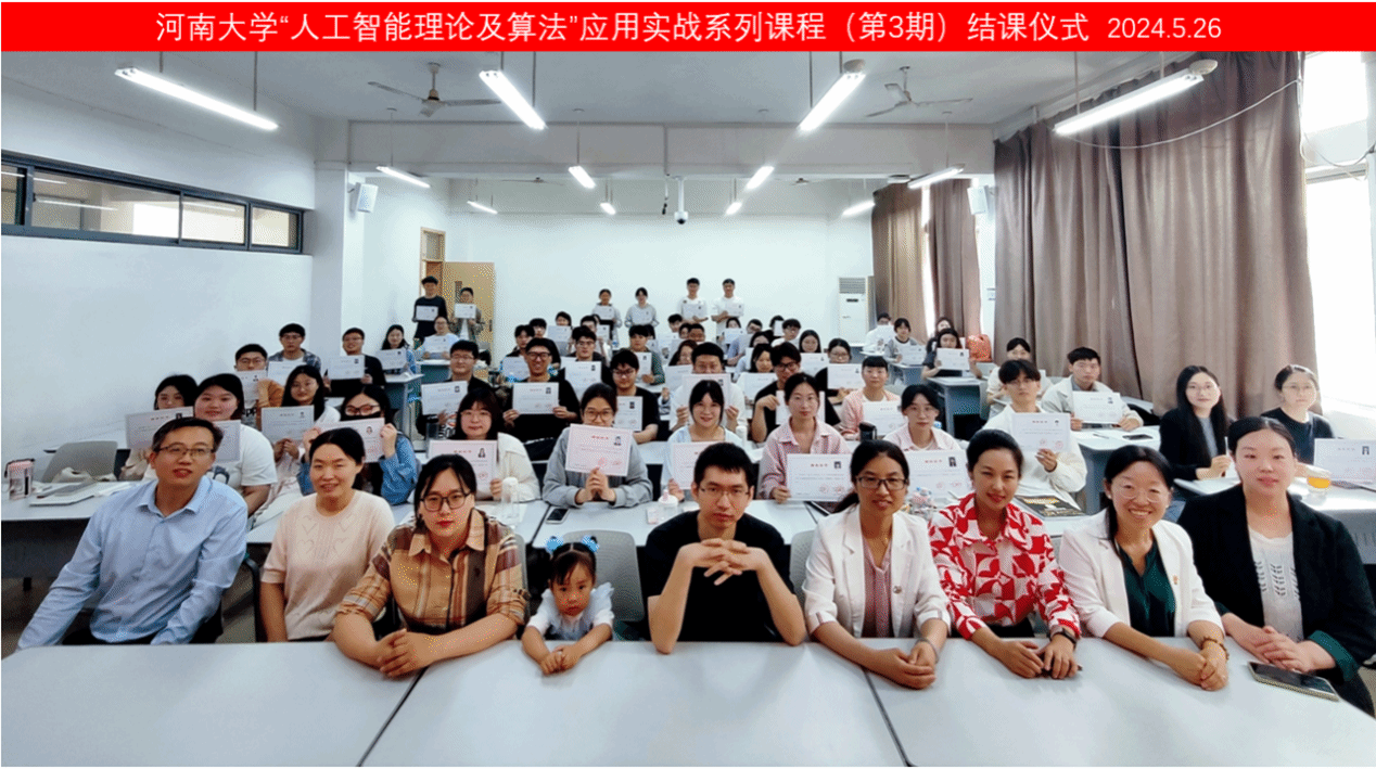 5月26日,河南大学“人工智能理论与算法”应用实战系列课程(第3期)结课仪式在金明综合楼3208教室举办。