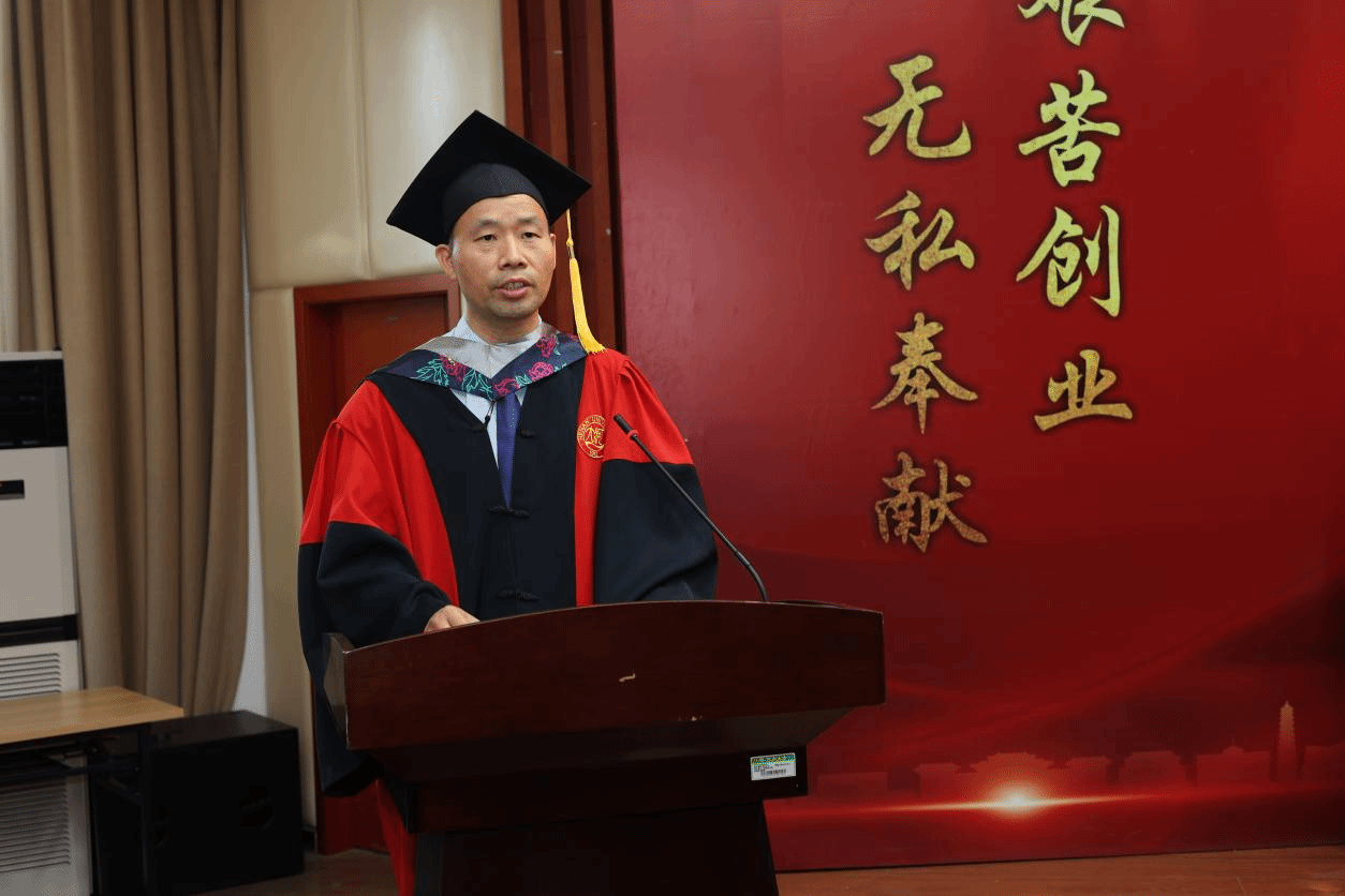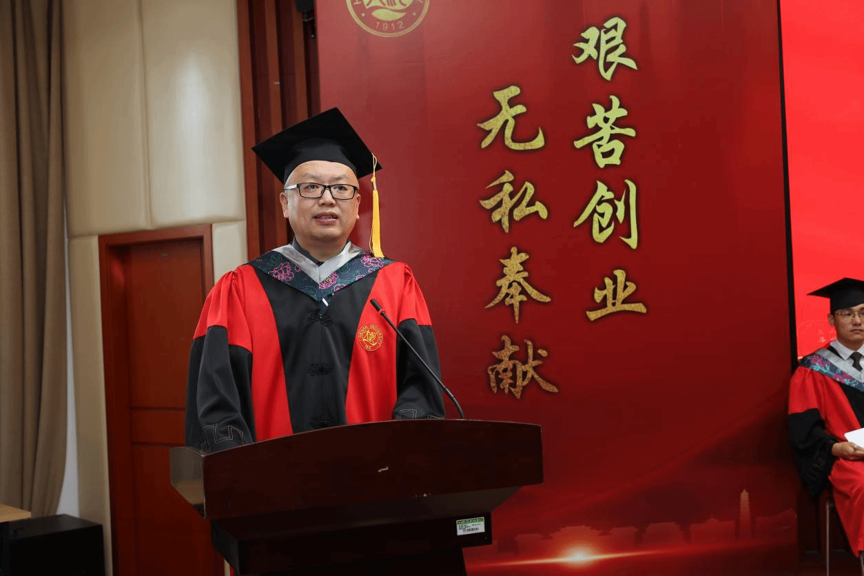 ,对完成学业的同学们表示了热烈祝贺和美好祝愿。他希望同学们:坚定理想信念,强化使命担当,立足时代要求、着眼国家发展,以担当民族复兴大任为己任,树立为国为民的远大志向,以聪明才智贡献国家;追求科学真理,勇于探索未知,用智慧和才华去揭示更多的真理,去探索更广阔的领域;修身立德务实、练就过硬本领,知行合一、勇于实践,既读有字之书,也读无字之书,在学中干、在干中学。