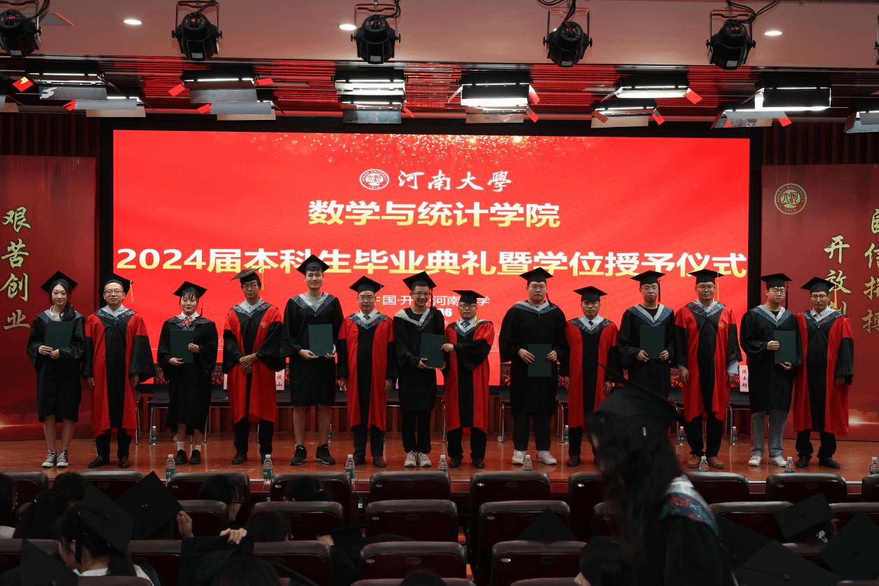 学位委员会成员为2024届本科毕业生援正流苏,颁发学位证书并合影留念。