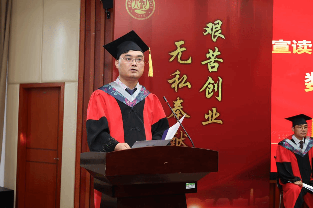 王中华宣读《河南大学学位评定委员会关于授予普通本科毕业生学士学位的决定》。