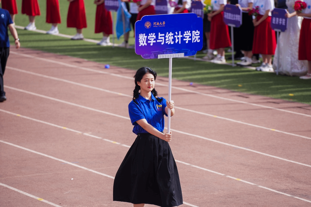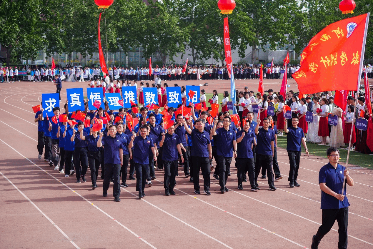 代表队高举“求真悟理,推数致用”的院训格言,迈着矩阵般整齐有力的步伐,昂首阔步地走进操场,洋溢着自信与活力。