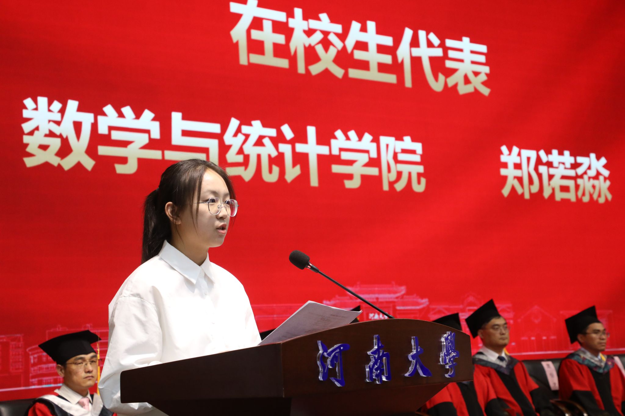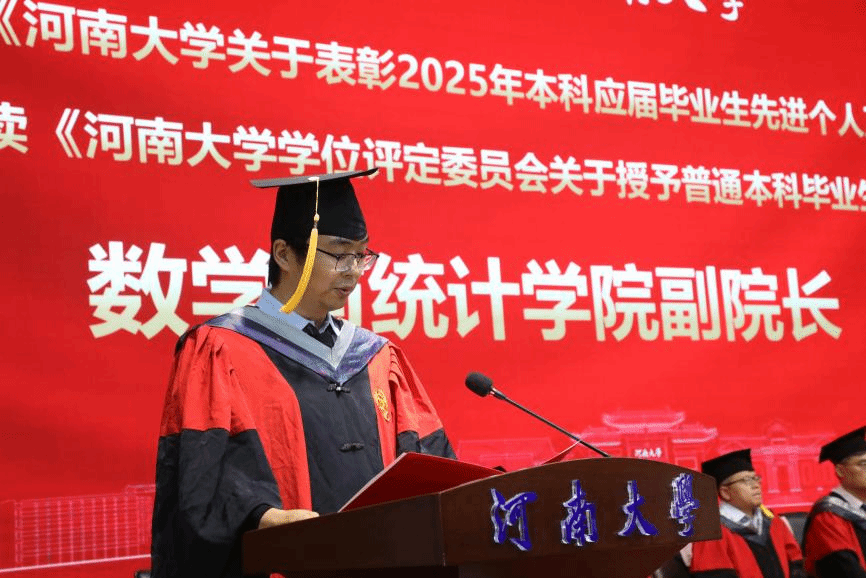 王中华宣读《河南大学关于表彰2025届本科应届毕业生先进个人及优秀毕业生的决定》《河南大学学位评定委员会关于授予普通本科毕业生学士学位的决定》。