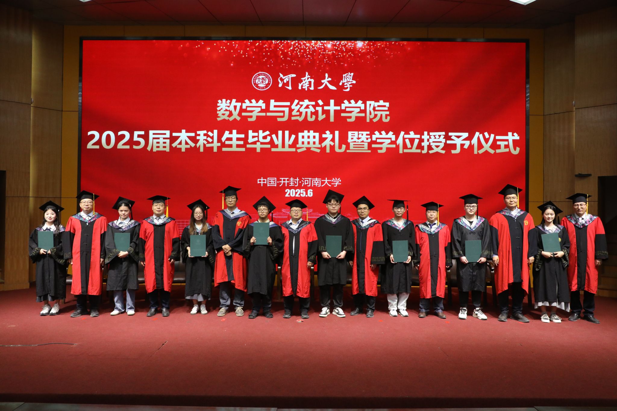 学位委员会成员为2025届本科毕业生援正流苏、颁发学位证书并合影留念。