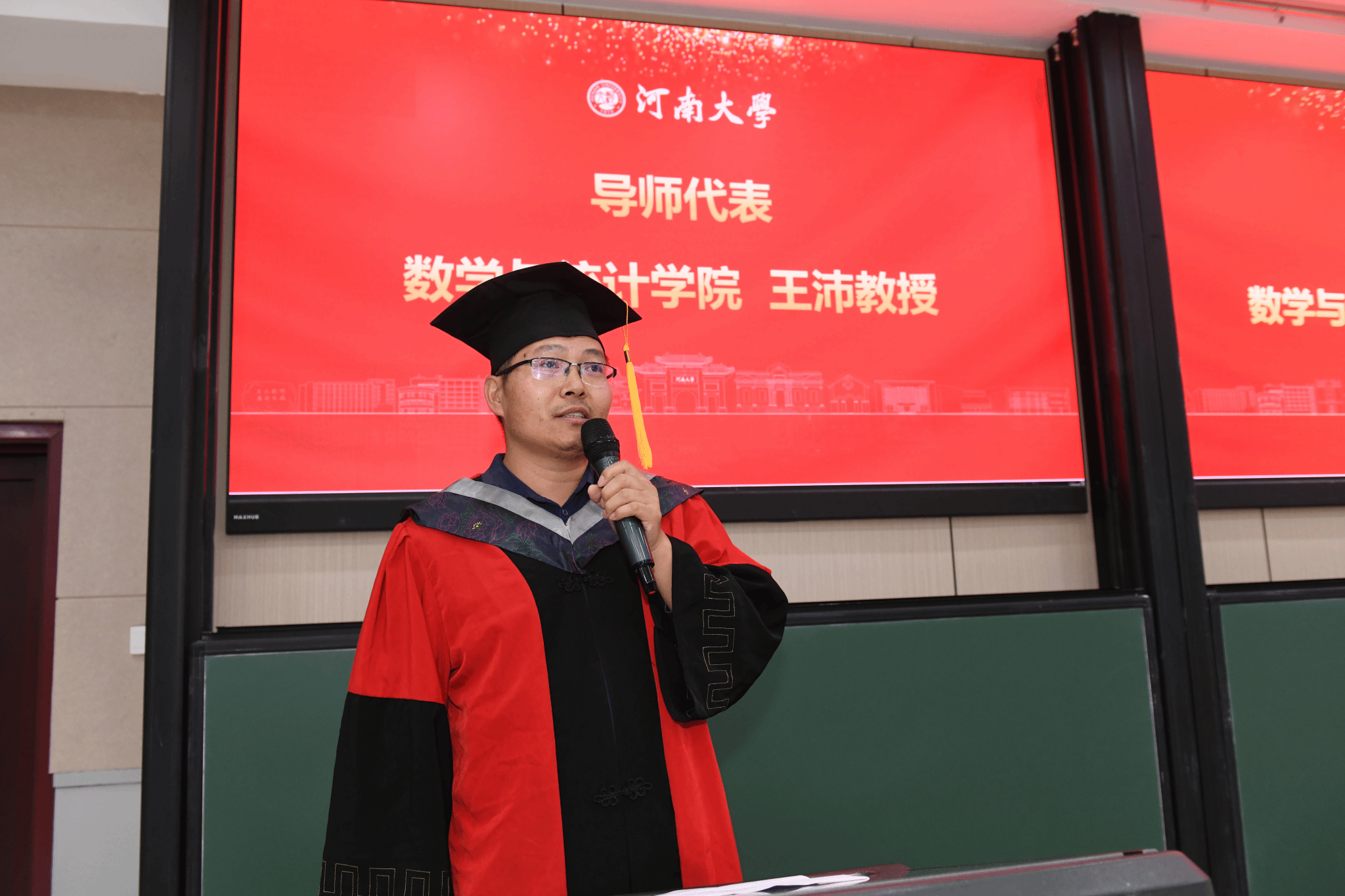 韩小森对毕业生们圆满完成学业表示祝贺,并高度评价了毕业生们在校期间取得的丰硕成果,寄语大家要永葆求真务实、化繁为简、创新突破、经世致用、坚韧不拔的数学精神品格。毕业是终身学习的新起点,他勉励毕业生们带着河大人的智慧与担当,“找到人生的最优解,谱写壮丽的生命华章”,并表示母校永远是学子的精神家园和坚强后盾,欢迎常回家看看。