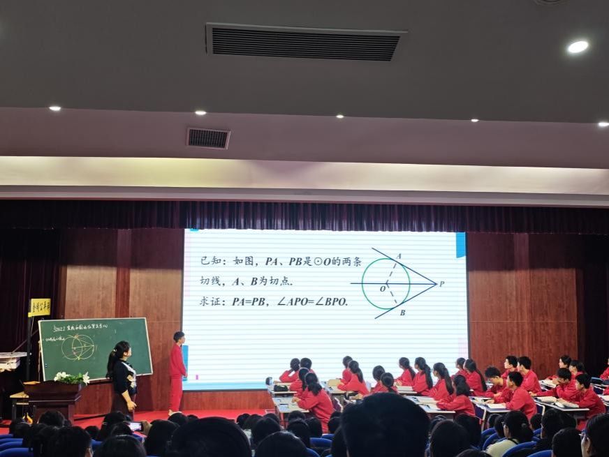 河南省骨干教师杨蕾以《切线长定理和三角形的内切圆》为题,带来了一节生动的有生试讲课。杨老师巧妙设问,采用问题链的形式推进,引导学生通过观察、猜想、验证和推理,自主构建知识体系,将“问的权利”、“讲的机会”、“练的时间”和“思的空间”充分还给学生,使课堂真正成为学生探索与成长的舞台。