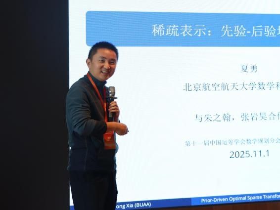 在大会特邀报告阶段,香港中文大学苏文藻教授以“Randomized Riemannian Submanifold Subgradient Method for Optimization over Stiefel Manifold”为题,介绍了流形优化领域的最新算法突破,分享了该领域的前沿研究进展。北京大学的张志华教授围绕“Stochastic Optimization, Stochastic Approximation and Statistical Inference”展开讲解,深入分析了跨学科研究中的核心逻辑及其相互关系。北京航空航天大学夏勇教授的报告以“稀疏表示:先验-后验域变换框架”为题,为信号处理与机器学习的融合提供了全新的思路和方法。中国人民大学的朱利平教授则结合“概率论与数理统计国际学术期刊论文发表情况”,为青年学者如何提升国际学术影响力提供了宝贵的实用建议。每场报告都引发了热烈的讨论,学术氛围浓厚,启发了与会者对相关领域的深刻思考。