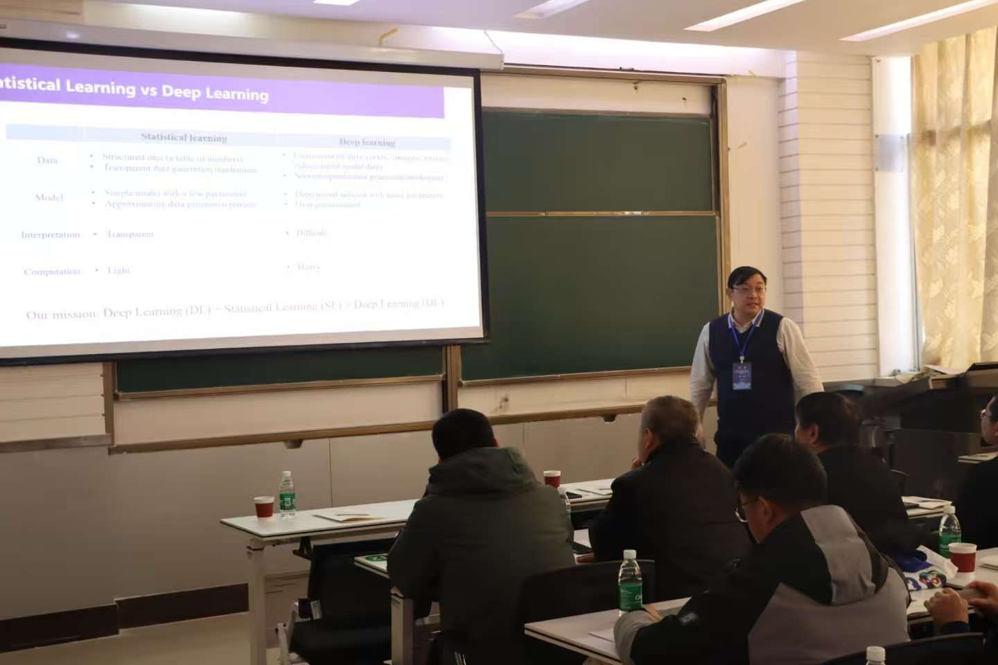 李启寨研究员、清华大学邓柯教授、武汉大学涂志刚教授、华东师范大学刘玉坤教授和同济大学梁汉营教授、河南师范大学庞善起教授、郑州大学冯三营教授等专家学者从统计学科理论及应用的视角下,围绕生物医学统计、统计与人工智能协同、人工智能数据分析、分布偏移数据、高维分位数回归、正交表与量子信息、函数型数据分析等前沿问题,交流了最新的研究成果。