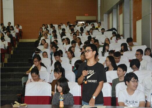 吴可教授详细介绍了数学学习方法。他提醒新生要培养自主学习的能力,尽快适应大学课堂。提问环节,吴可教授与现场新生进行了亲切的互动和交流。
