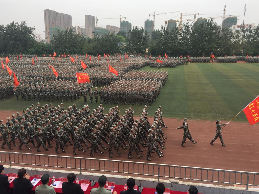 迎着阵阵秋风,伴随着激昂的进行曲,各连队踏着整齐划一的步伐依次经过主席台接受领导的检阅。在连队飘扬的旗帜带领下,我院2018级35、36两个新生连喊着洪亮的口号,迈着齐整的步伐走近主席台。“青春飞扬,拼搏自强;人生豪迈,三六辉煌。”他们斗志昂扬,神采奕奕,踏出了坚定的步伐。抖擞的精神面貌,洋溢着青春的活力与生机,整齐的军容,飒爽的军姿是少年自强的象征,少年强则国强,军训锻炼了新生的毅力,让新生的品格更加完美。军训是苦的,但收获却是甜的。