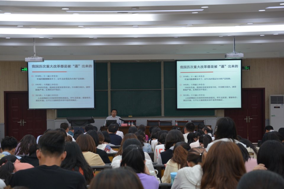 教授李保民在南阶梯教室作“习近平总书记论全面深化改革”专题报告,spbo即时比分手机