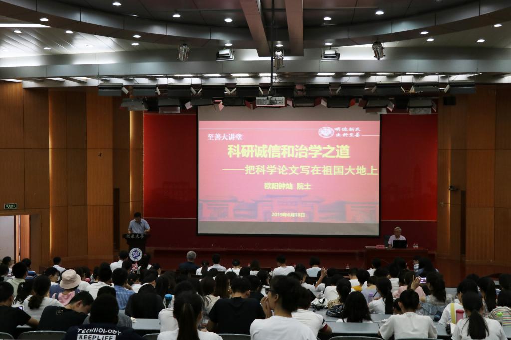 6月18日上午,欧阳钟灿院士做客我校第21期“至善大讲堂”,作了题为《科研诚信和治学之道—把科学论文写在祖国大地上》的报告,报告由研究生院常务副院长苗琛主持。spbo即时比分手机