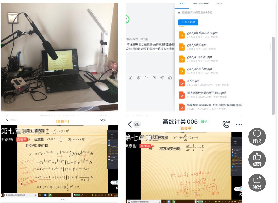 以上几位老师的教学工作是全院老师线上教学工作的一个缩影。老师们为了线上教学工作都精心设计、认真授课,也体现出了各自的教学特色和教学风格。