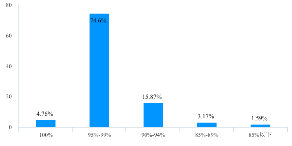对于学生参与线上学习的积极性方面,79.36%的课程学生出勤率在95%以上,95.23%的课程学生出勤率都在90%以上,对于出勤率低于85%的课程,spbo即时比分手机