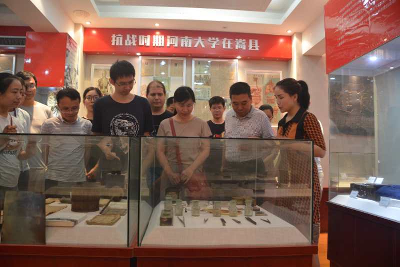 办学旧址参观考察。展览馆中陈列着革命时期的一些历史文物和我校在嵩县办学的一些有纪念价值的物品,而财神庙作为河大当年在嵩县坚持开展医学教育的见证者,越来越受到当地政府和人民群众的重视和保护。一座座抗战办学遗址遗迹,一张张敌前办学老照片,蕴含着河南大学英勇不屈、抗战办学的英雄气概,彰显着河南大学和当地父老乡亲绵延不绝、血浓于水的校地深情。我校师生在嵩县人民的多方支持和帮助下,众志成城,奋发图强,在抗战的最前沿办学不辍,教学科研成绩斐然,在中国抗战时期高等教育史上写下了值得自豪的一页。这种以家国情怀托举时代使命、以责任担当背负历史重任的行为所彰显的爱国报国精神,照亮了那个灰暗的时代。