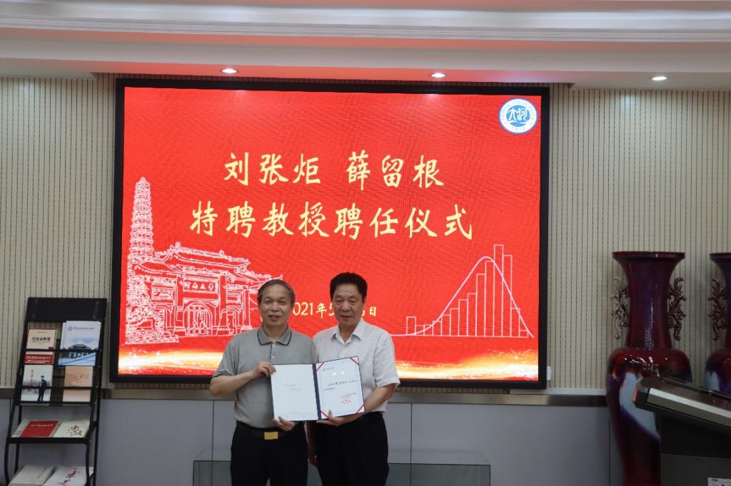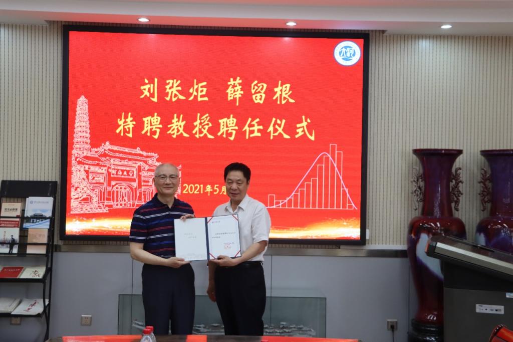 在院二楼会议室为北京大学刘张炬教授、北京工业大学薛留根教授受聘我校特聘教授举行聘任仪式。spbo即时比分手机