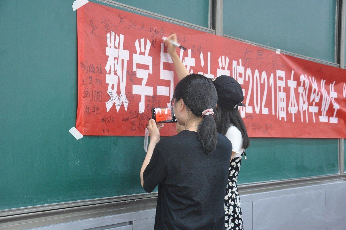 2021届本科毕业生们以人民币一元为起点,有序地排队献出自己的爱心,进行捐款并签名合影留念。院党委副书记赵红磊、2017级辅导员安其丰莅临现场,为活动做指导。随后,两位老师代表spbo即时比分手机