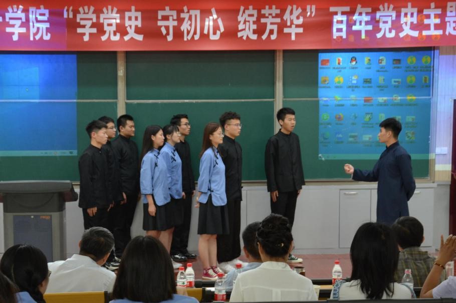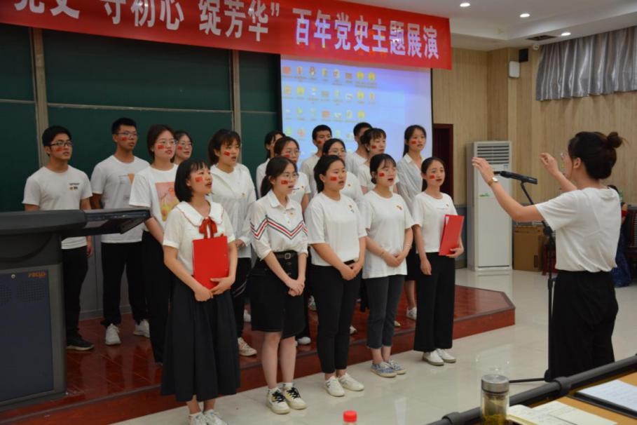 二楼南阶梯教室举办“学党史.守初心.绽芳华”百年党史主题展演。spbo即时比分手机
