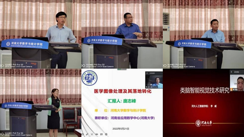 院长韩小森、河南大学讲座教授杭诚方、河南大学特聘教授薛留根、河南省应用数学中心执行主任肖运海、郑州数字创新中心主任赵明、副主任张鹏等出席会议。郑州数字创新中心、河南机场集团信息中心、河南大象智行科技有限公司、北京拾联科技有限公司、北京华成智云科技有限公司、云图科技(深圳)有限公司、河南数字中原科技有限公司的各位代表及河大师生共计七十余人线上线下参加了本次会议。会议由韩小森和肖运海共同主持。
