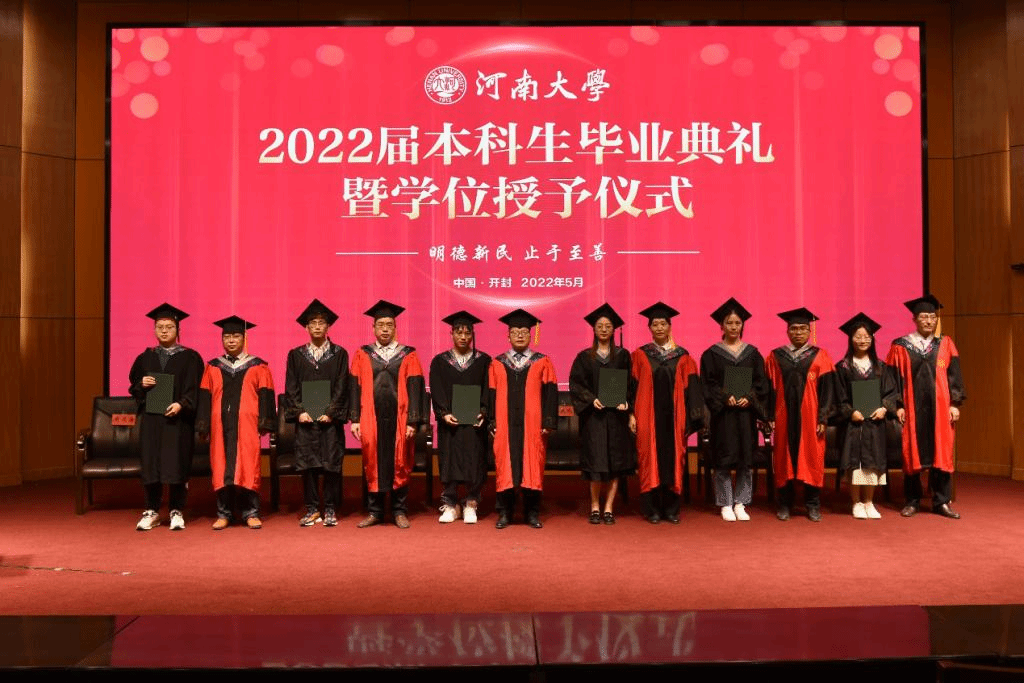 王友成宣读《关于表彰2022年河南省优秀应届大中专毕业生的决定》和《河南大学关于表彰2022年优秀应届毕业生的决定》。