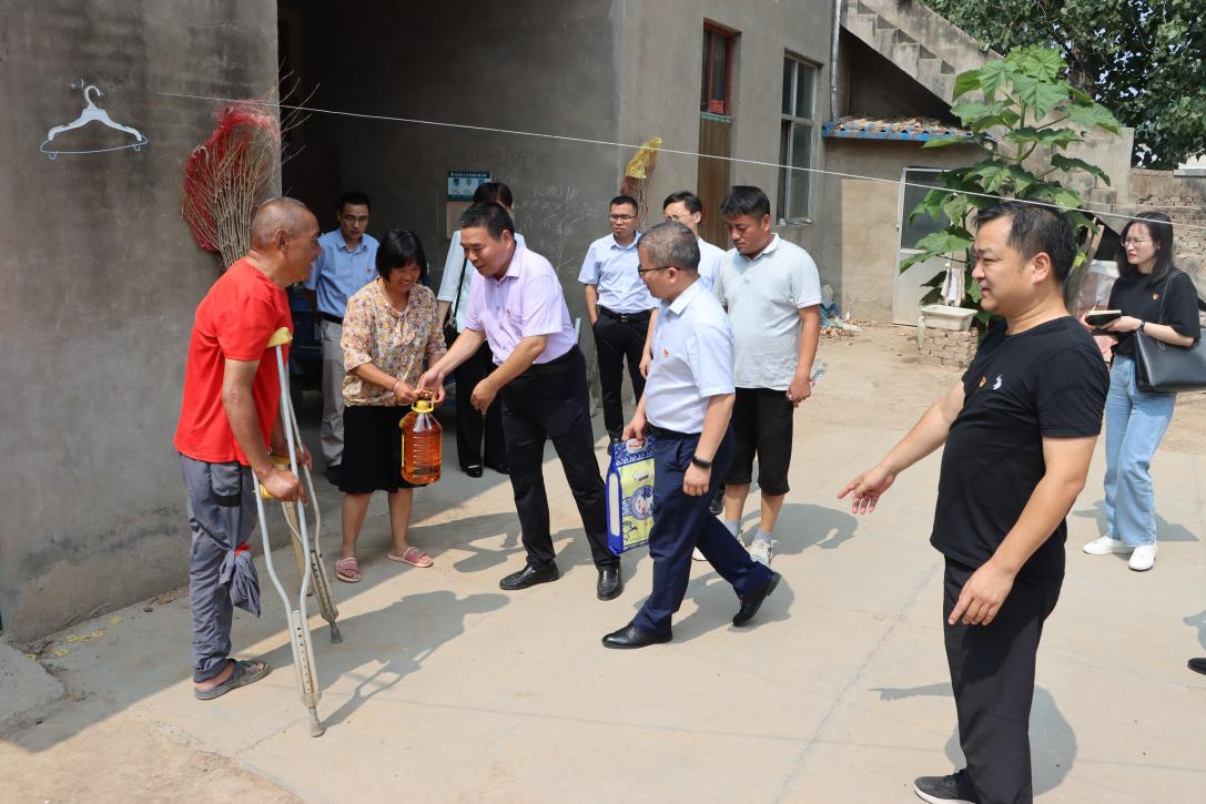 党委书记史富强、院长韩小森、党委副书记赵红磊、副院长王波、杨一平、唐恒才和教师党员代表赴通许县竖岗镇前付村开展主题党日活动,助力乡村振兴并看望慰问我校驻村干部。