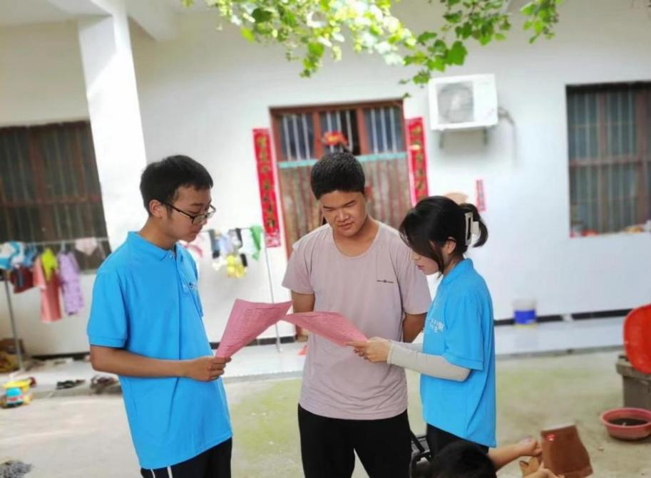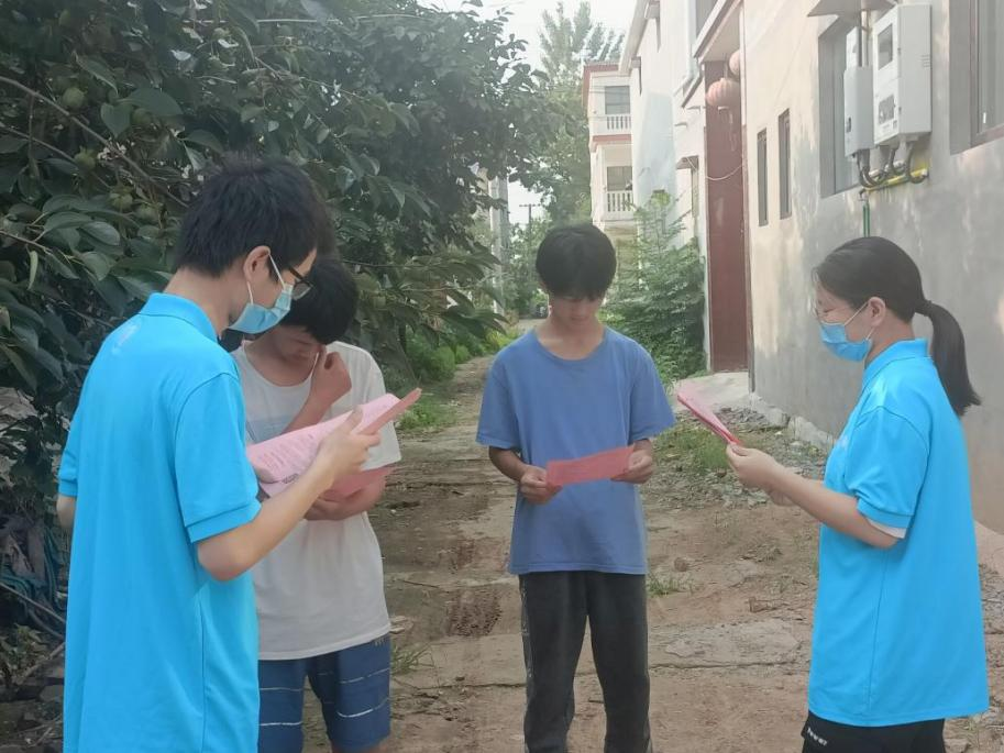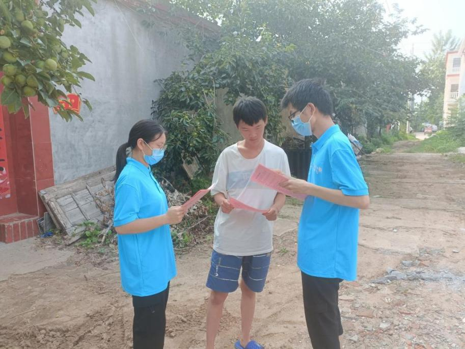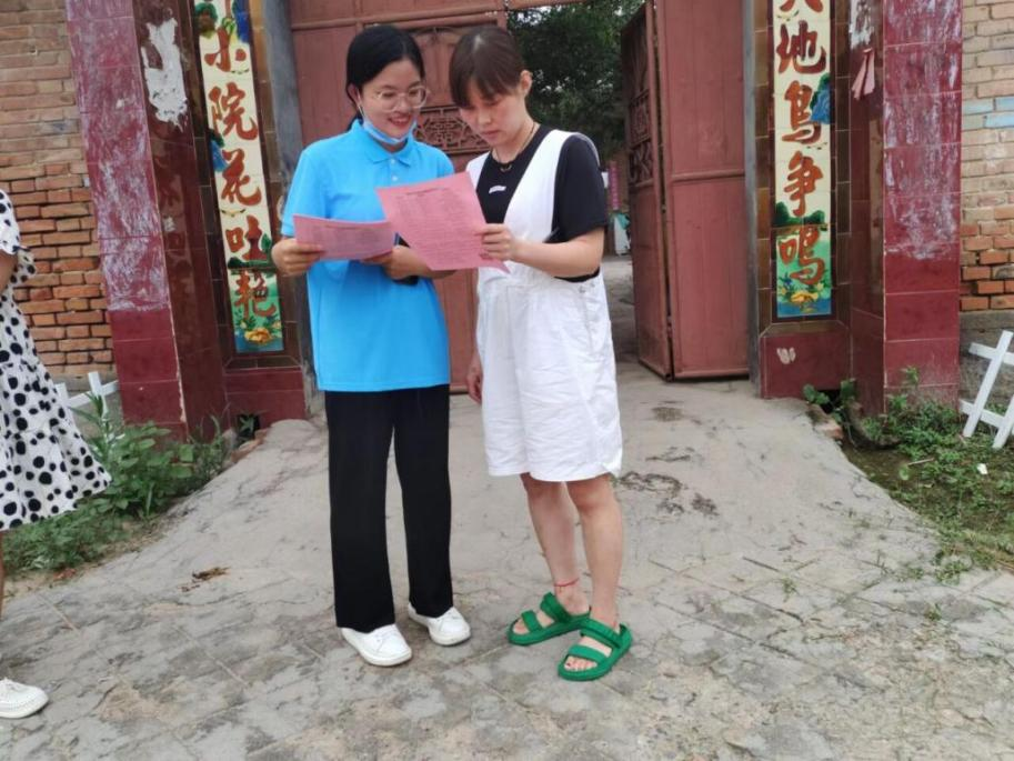 7月16日-18日,张祎等3名宣讲成员在新乡市原阳县太平镇乡油房屯村走访经济困难家庭,向家长分发资助政策宣传页,详细介绍了国家资助政策与学校特色资助措施,打消他们“上不起学”的顾虑,有位家长说,“以前村里有好多孩子家里交不起学费,高中毕业就出去打工了,你们的宣传让我们了解到政策越来越好了,只要孩子考上就不愁上不起学了。”