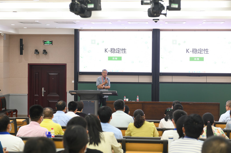 田刚院士从几何的主要研究对象是各种群作用下的不变量出发,以SL(2,C)为例,指出其上的多项式空间在一个代数群作用下,其不变多项式形成一个交换代数,向大家介绍了经典的几何不变理论(GIT)。田刚院士详细阐释了在求解Kähler-Einstein度量w(满足Ric(w)=λw)问题中的一些重要结果,进而结合自己的研究成果向大家介绍了K-稳定性的定义、应用和发展历程,指出K-稳定性是解Kähler-Einstein度量的充要条件。最后田刚院士还介绍了过去十年中在K-稳定性方面很多重要工作,K-稳定性和几何不变理论(GIT)的关系,并指出K-稳定性在扩展了的几何不变理论框架中是很重要的。