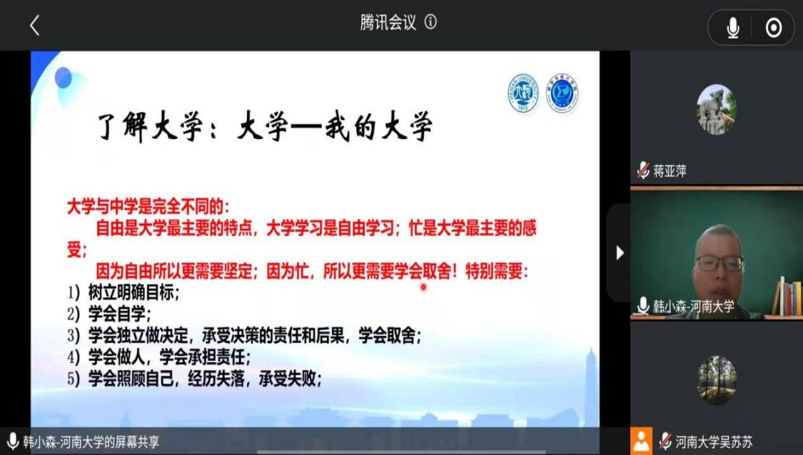 希望同学们能够全面了解我的大学,掌握学好数学的要领方法,在学好数学之中热爱数学,当好河大未来“数学人”。