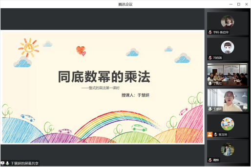 数学与应用数学专业2019级14位本科师范生首先进行线上课堂模拟教学,每人讲课展示时间限定在八分钟以内,课例内容既包含初中又包含高中相关课程,如分式方程、平方差公式、合并同类项、等差数列、向量的加法等,涉及代数、几何等相关知识点。四人一组展示完后,由丁桃红老师及其团队教师针对该生的教学技能、教学设计等进行逐一点评,在肯定优点的同时又指出了不足之处。各位同学充分展示了自身的课堂组织能力、教学基本功和良好的基础知识水平,老师们专业细致的点评使大家备受鼓励、收获满满。