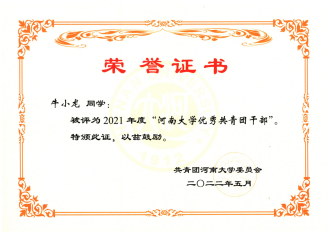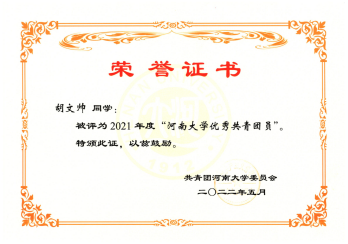 2021级硕士研究生集体形成团结友爱、拼搏向上的良好氛围。在引领集体不断向上的过程中,宿舍的每个成员收获了同学们的一致好评,荣获河南大学“优秀研究生干部”、“优秀共青团干部”、“优秀共青团员”等荣誉称号。